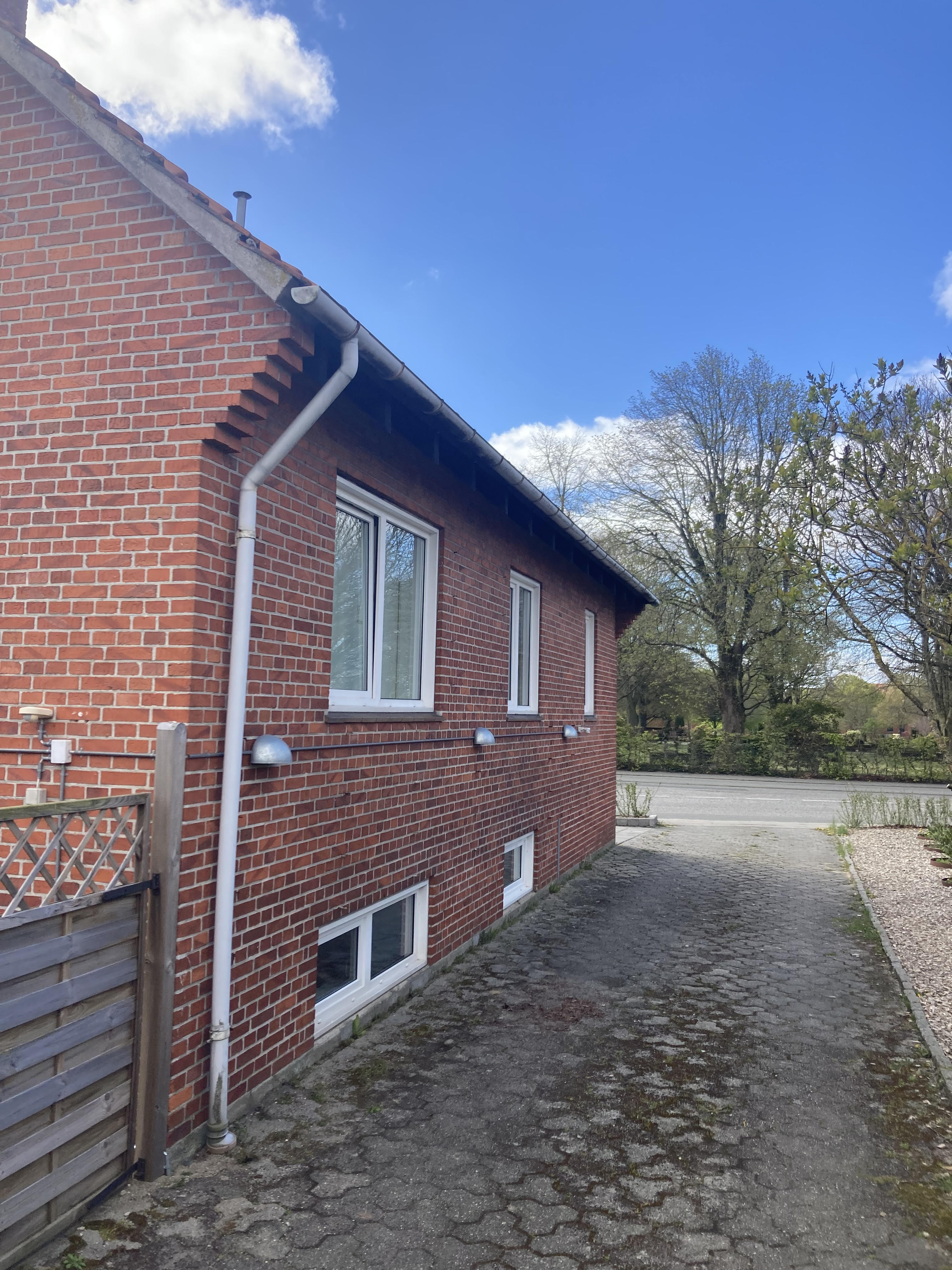 Ca 22 meter tagrende siddende cirka seks meter fra jorden. (11 meter på hver sidde af huset. Det er muligt at køre lift ind til huset på begge sider. Den vil kunne stå på fliser
